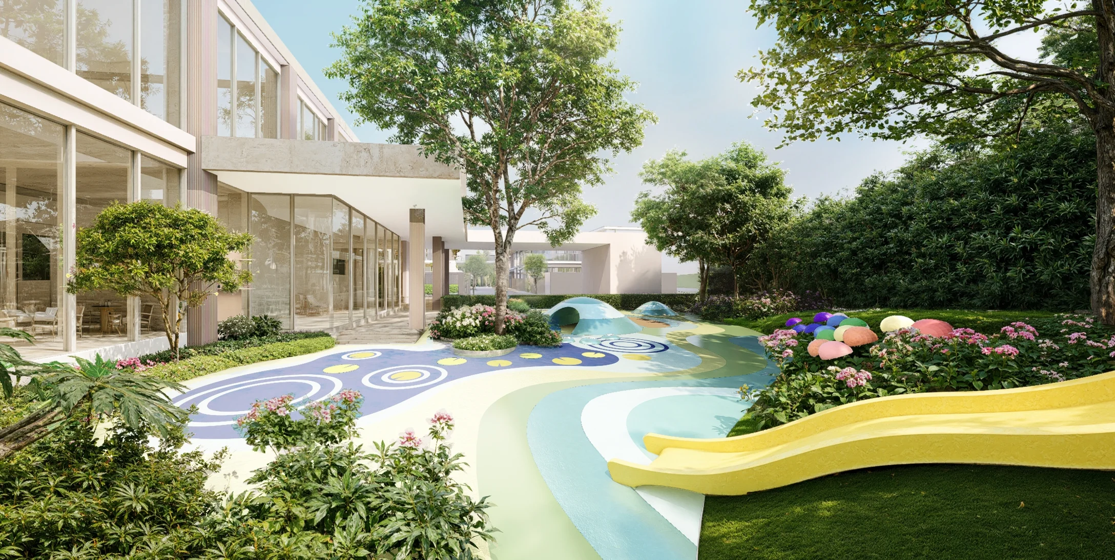 Our spacious Social Club is a multifunctional area design to feel like a luxury living lobby with sitting, dining and bar area for flexibility and comfort. The club also comes with a catering room in case of special celebration and events is to take place. All area has built-in electric sockets and cable plugs with high speed internet to make sure everyone can be connected for work, for school or just to have fun. Meeting rooms are also provided for more serious occasion or if you simply require a little more privacy. On the top floor you have The Game Room to enjoy and a 200 sqm. fitness facility with a private studio overlooking the pool and gardens. The Serenity Garden is connected to The Kids Club and The Ground, a very large outdoor play area for your little ones. The Freedom Clubhouse is truly a luxurious extension of your beautiful home.