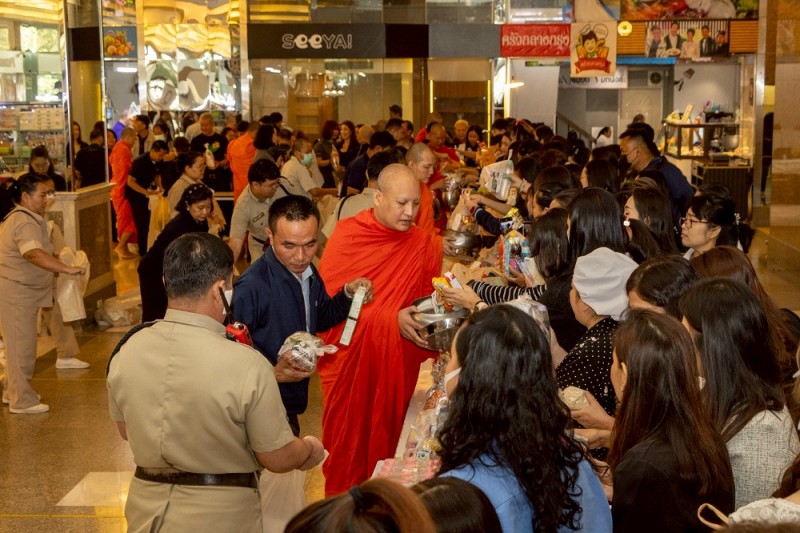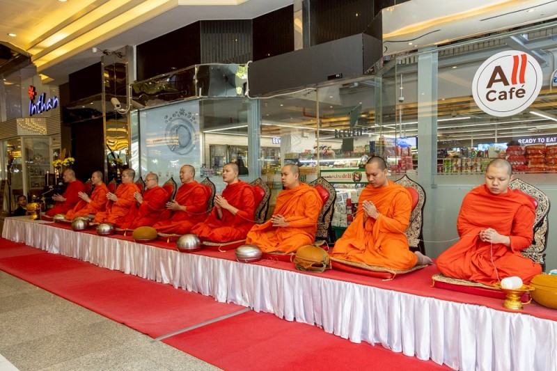 อาณาจักร ทิวทะเลเวิล์ด โครงการมิกซ์ยูสริมชายหาด พัฒนาโดย บริษัท ร่วมอิสสระ จำกัด ได้จัดพิธีทำบุญตักบาตรข้าวสารอาหารแห้งแด่พระสงฆ์จำนวน 9 รูป